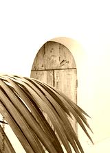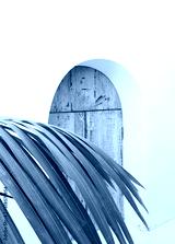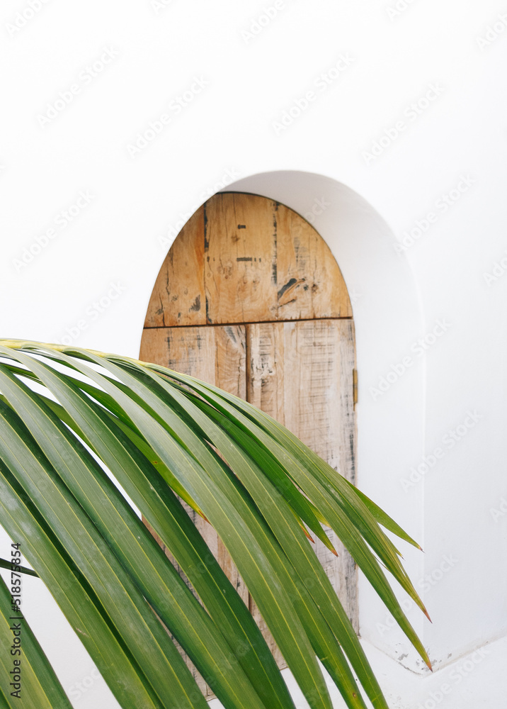 Stylish palm leaves on white wall. Minimal aesthetic nature background