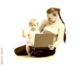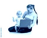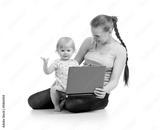 mother and child working at laptop