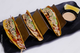 mexican food stuffed taco with seafood and chicken in a serving stand