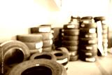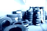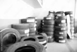 Blurred abstract background of car in garage for change tire, automotive and maintenance concept..