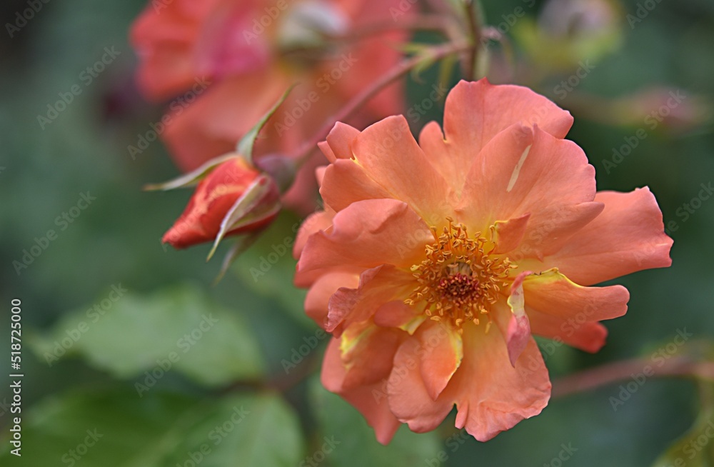gardening. hybrid tea rose apricot climbing Westerland on a green background on a summer day