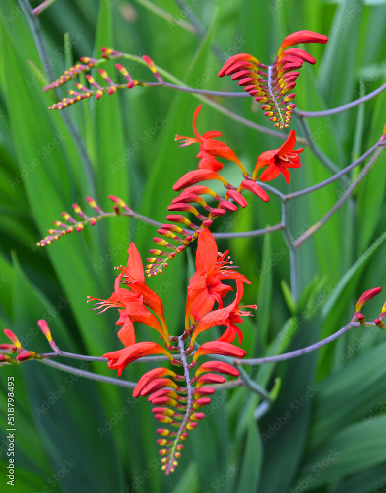 Crocosmia is a small genus of flowering plants in the iris family, Iridaceae. It is native to the grasslands of southern and eastern Africa