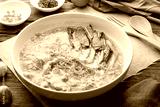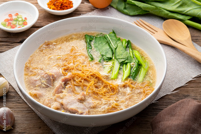 Close up Rice Vermicelli Noodles with Pork in Gravy Sauce (rad na moo).Thai food