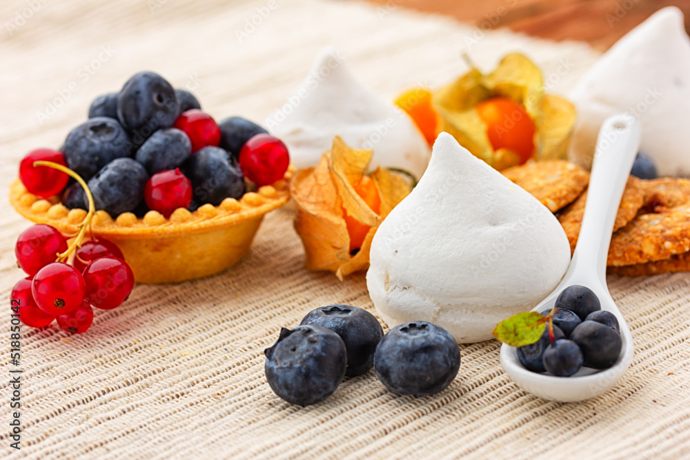 Meringue cookies and berries on the table