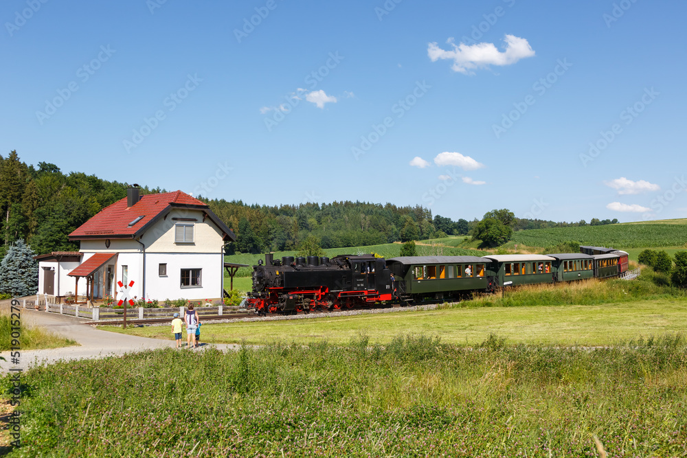Öchsle steam train locomotive railway in Ochsenhausen Wennedach, Germany