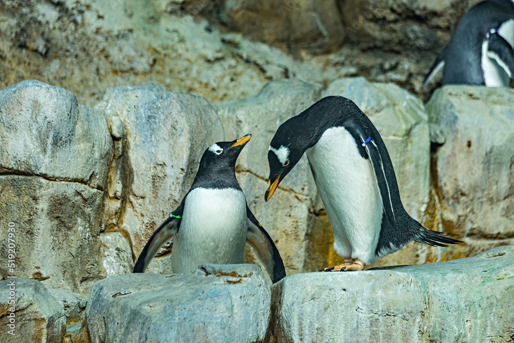 Funny penguins in the zoo