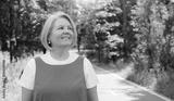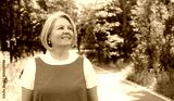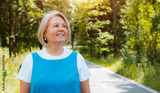 Portrait of happy senior woman relaxing and breathing fresh air with sunlight in outdoors park. Elderly woman enjoying a day in the park on summer.