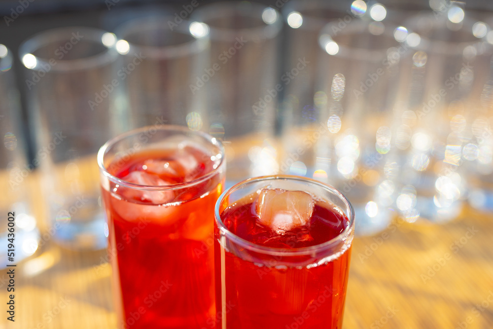 glass cups for cold drinks at a picnic