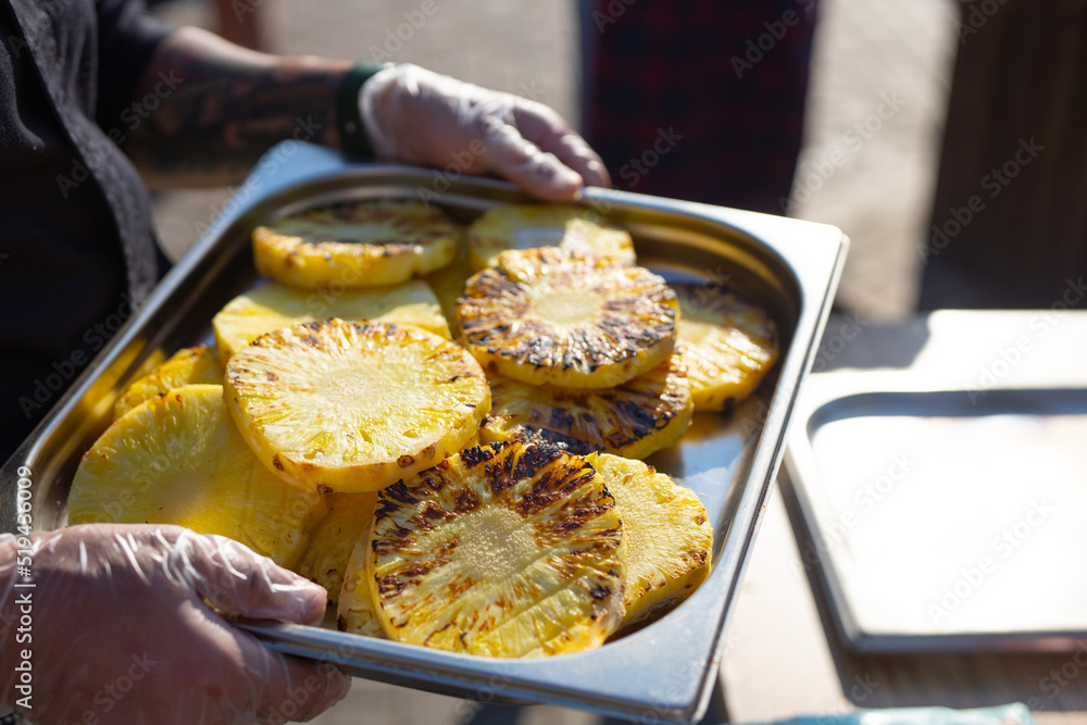 grilled pineapple wedges on a tray