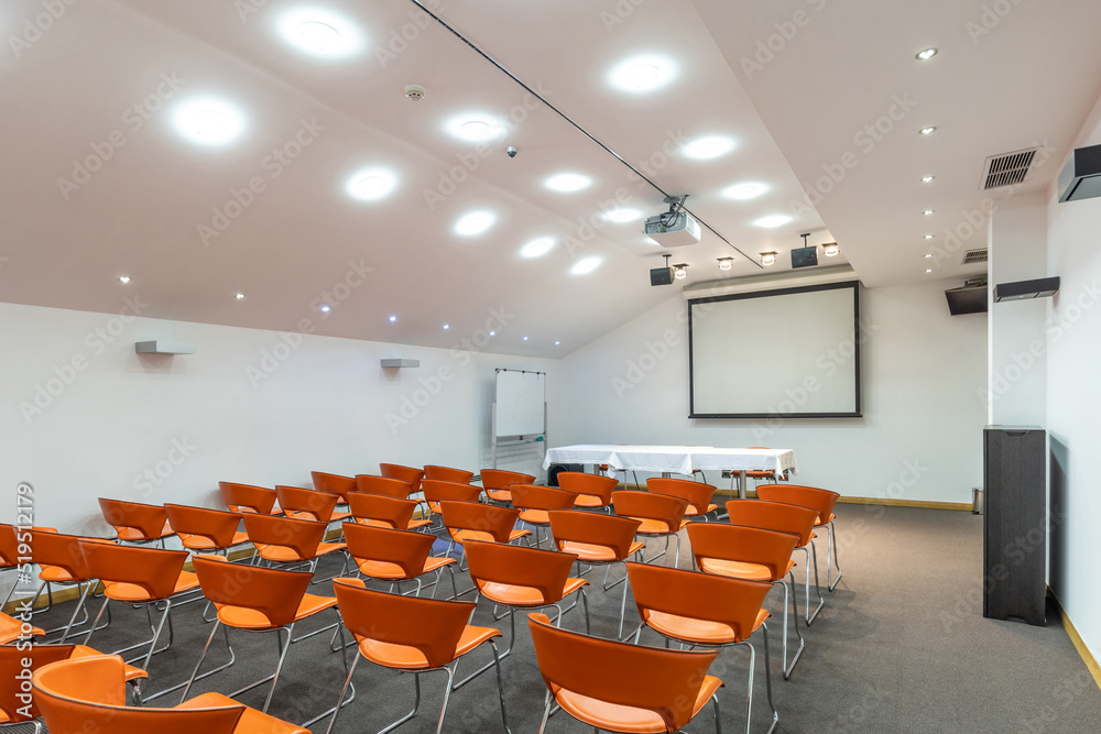 Interior of a room for presentations full of chairs