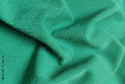 Green galliano fabric crumpled or wavy fabric texture background. Abstract linen cloth soft waves. Viscose yarn. Smooth elegant luxury cloth texture. Concept for banner or advertisement.