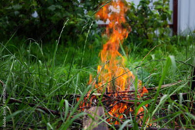Bonfire on a background of green grass