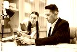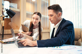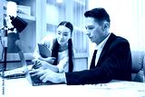 Portrait of Young businessman and female secretary meeting in the office. Business success concept.