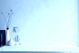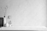 Creative desk with notebook, desk objects, office supplies, books on a bright background.