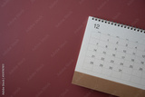 close up of calendar on the crimson table background, planning for business meeting or travel planning concept