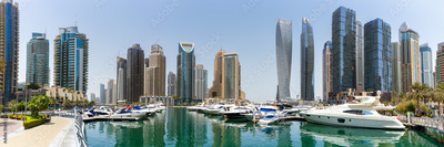 Dubai Marina skyline yacht harbor architecture travel panorama in United Arab Emirates