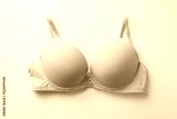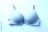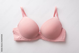 Breast cancer awareness concept. Top view photo of pink brassiere on isolated white background
