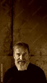 Portrait of elderly caucasian man look at camera