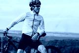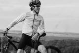 Professional Male Cyclist with His Bike Outdoors, Adult Man Wearing Helmet and Protection Sport Glasses Looking Away, Copy Space