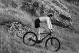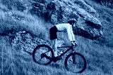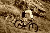 Professional Cyclist Descend from a Hill on a Bicycle, Sportsman Wearing Helmet