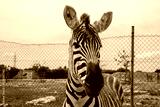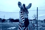 Zebra zbliżenie, portret, zwierzę stoi i patrzy w kamerę.
