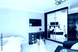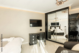 Interior of a luxury bedroom with marble floor