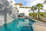 Sea hotel resort with swimming pool in the morning