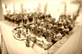 Row of appetizers and starters on the wedding table