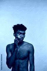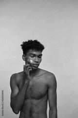 African american guy smearing cream on his face