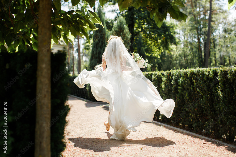 Bride in wedding dress posing in the garden
