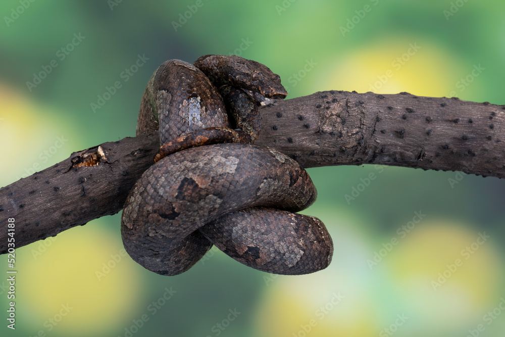 Candoia carinata snake, known commonly as Candoia ground boa snake, Pacific ground boa, or Pacific keel-scaled boa, camouflage with brown tree trunk color.
