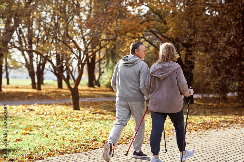 Senior caucasian couple hiking together at the park