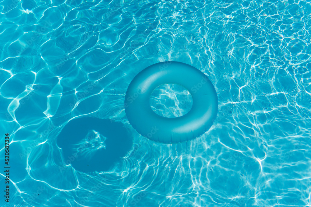 Blue summer pool rubber ring floating on a vacation swimming pool