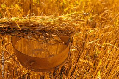 Old sieve for sifting flour and wheat on a wheat field