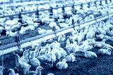 Chickens are drinking water in close farm, temperature and light control , Thailand.