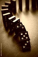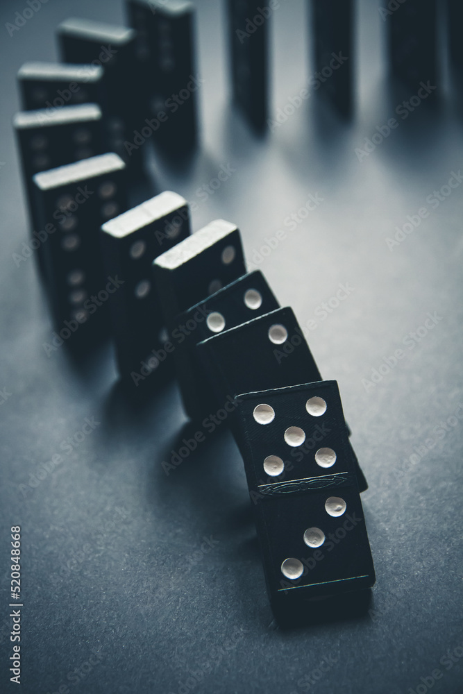 Black dominoes chain on dark table background