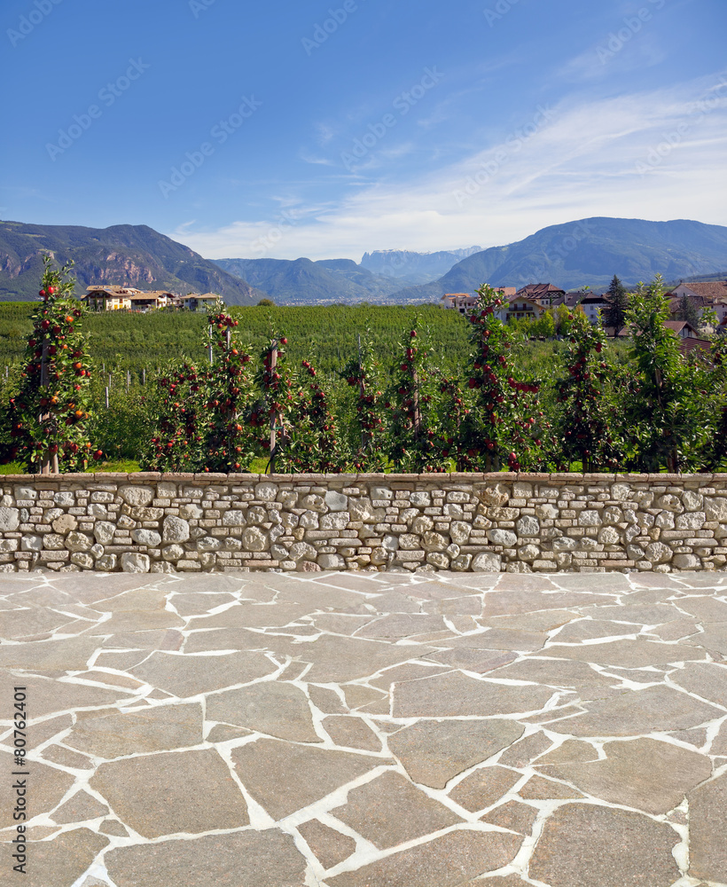 tiny plant grwowing in the mortar in a brick wall sprayed over (not by the photographer) with blue and purple paint