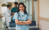 Concept of medical care. Asian female doctor of medical personnel, assistants, patients in the hospital