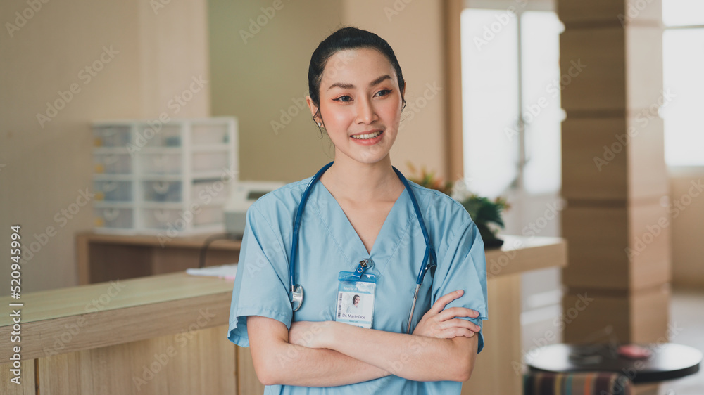 Concept of medical care. Asian female doctor of medical personnel, assistants, patients in the hospital