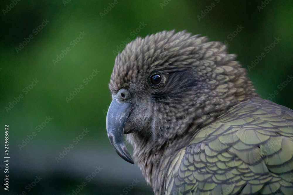 Close-Up Portrait of a New Zealand Mountain Kea Side On, Selective Focus