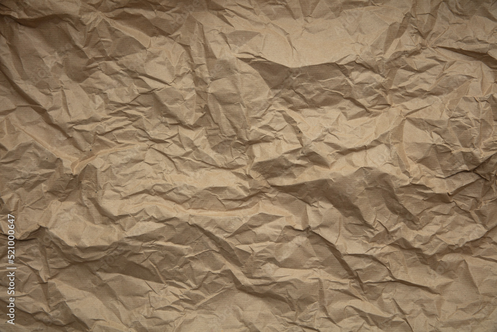 crumpled brown kraft paper background. Recycle old brown paper texture