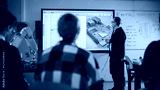 Confident Male Teacher Using Digital Interactive Whiteboard, Talking to Group of Diverse Students and Showing 3D Printed Circuit Board Concept. Education and Advanced Technology.