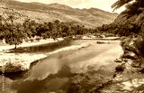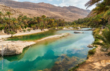 View of the Wadi Bani Khalid oasis in the desert in Sultanate of Oman.