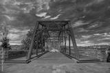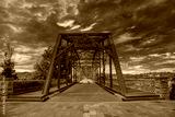 a stunning shot of the Walnut Street Bridge surrounded by lush green trees with powerful clouds at sunset in Chattanooga Tennessee USA