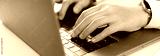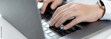 Businesswoman's hand presses on a laptop keyboard, World of technology and internet communication, Using computers to conduct financial transactions because the convenience and speed.