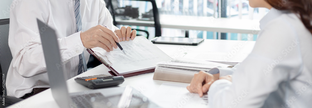 Brainstorm team, Marketers and financial accountants are discussing and analyzing charts to plan strategies to meet customer needs, Team meetings or business consulting.