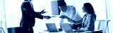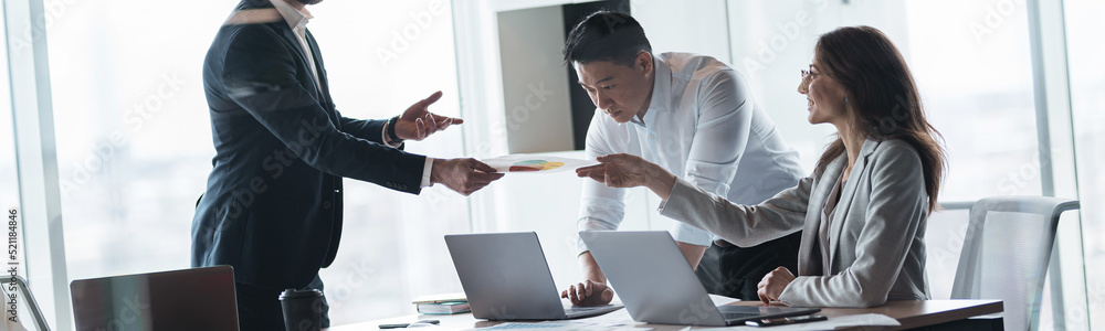 Creative business team working on project in office with panoramic view. The concept of teamwork.