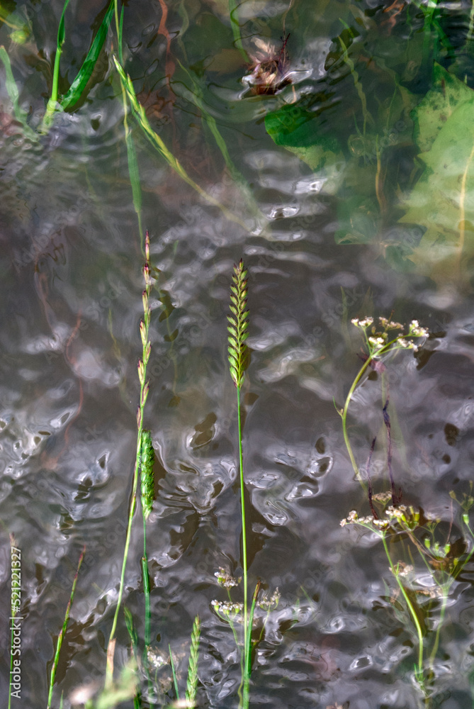 Grass grows about currents in the water