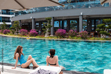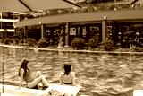 Antalia , Turkey 06 27 22 Summer holidays concept. Slim young women in bikini on the sun lounger near swimming pool in hotel resort