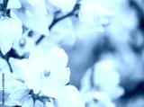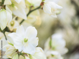 Delicate white yucca flowers close-up on a blurred background. Selective focus.